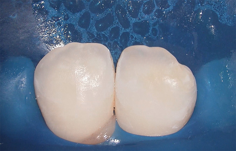 ホワイトスポットは大きく改善し、歯の表面の色調が均一になりました。自然な仕上がりとなり、患者様にもご満足いただいています。現在は定期メンテナンスで経過を確認しています。