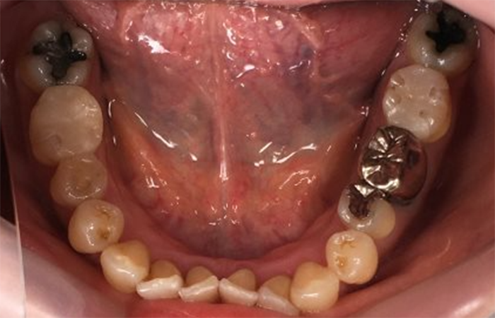 奥歯で噛んだ際の違和感があり来院されました。あわせて、既存の金属修復物が目立つことによる審美的なストレスがあり、さらに金属アレルギーへの不安も感じていらっしゃいました。 |